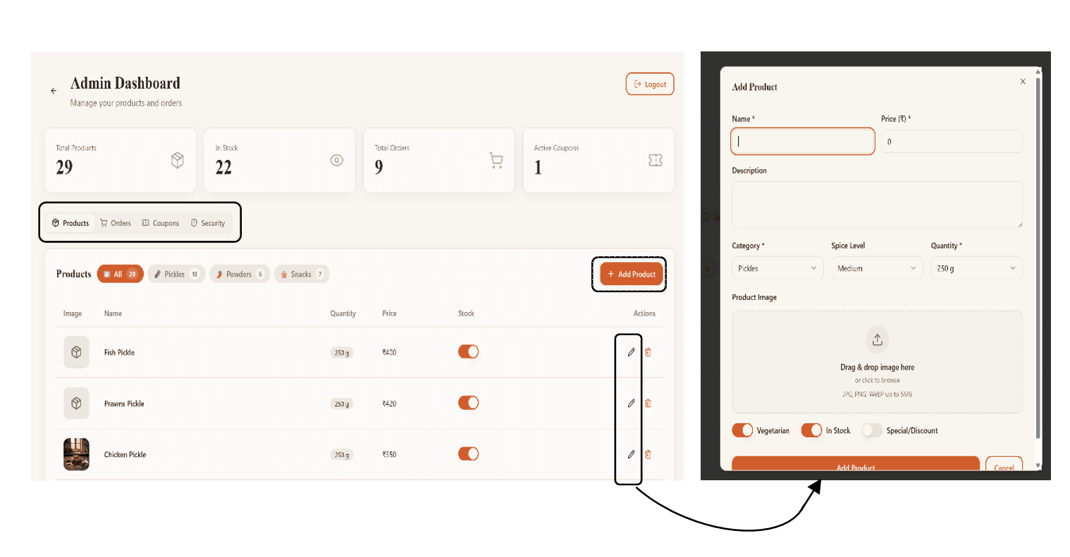 · Admin dashboard for orders and inventory